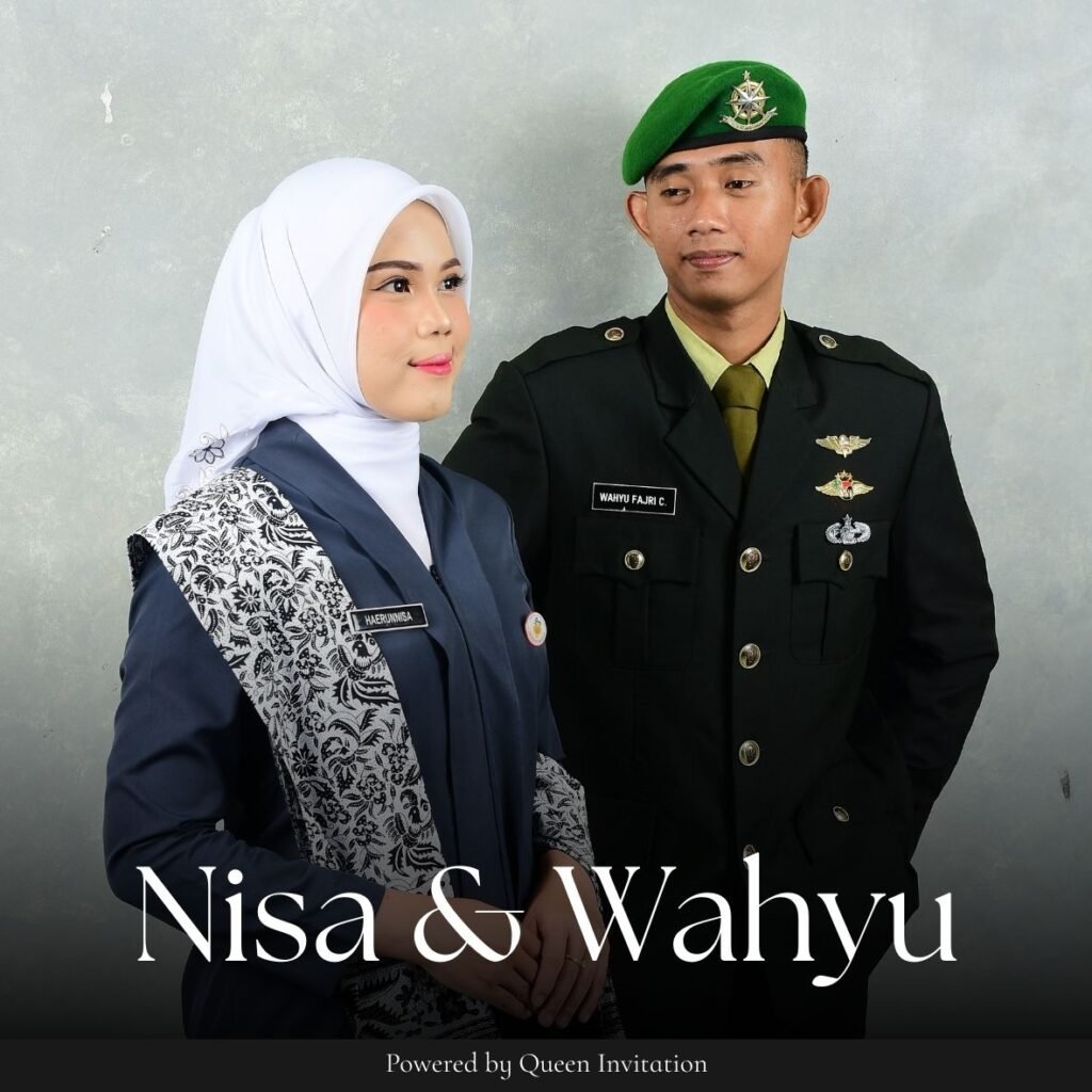 PERSONALIZED FOR Tamu Undangan WEDDING CEREMONY OF Nisa & Wahyu Ahad, 21 Desember 2025 Dan di antara tanda-tanda (kebesaran)-Nya ialah Dia menciptakan pasangan-pasangan untukmu dari jenismu sendiri, agar kamu cenderung dan merasa tenteram kepadanya, dan Dia menjadikan di antaramu rasa kasih dan sayang. Sungguh, pada yang demikian itu benar-benar terdapat tanda-tanda (kebesaran Allah) bagi kaum […]